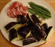 A茄子は食べやすい大きさに切って、水に5分ほど浸しアクを抜く。